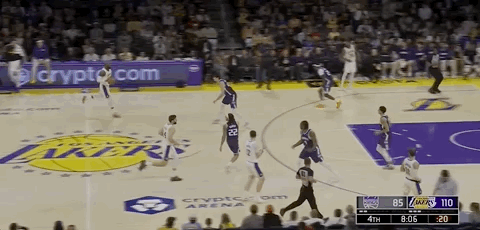 艾頓和八村壘在本節(jié)后段的發(fā)揮幫助湖人保持大比分領(lǐng)先進(jìn)入更衣室,全場(chǎng)比賽結(jié)束,湖人64-49國(guó)王。