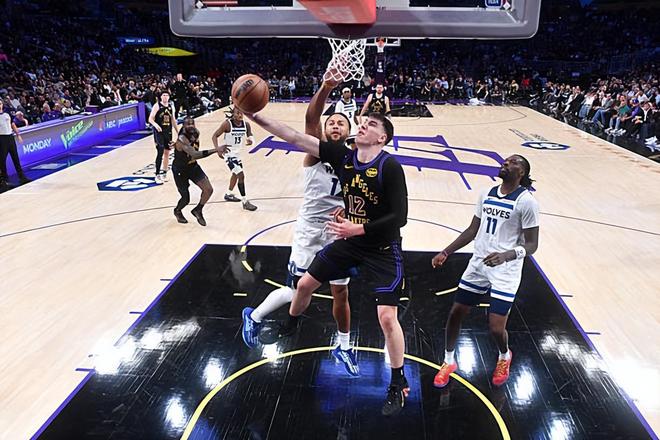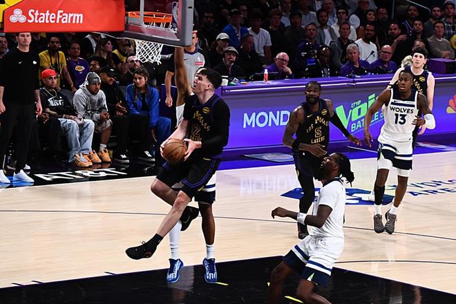 本場比賽中,湖人的替補(bǔ)側(cè)翼新星杰克-拉拉維亞(Jake LaRavia)的表現(xiàn)令人喜憂參半。拉拉維亞全場出場24分47秒,投籃7中1,三分線外2中0,罰球8中6,得到了8分7籃板4助攻2搶斷的數(shù)據(jù),其中還包括了5個(gè)前場籃板,還有1次犯規(guī),正負(fù)值為+13。拉拉維亞在進(jìn)攻端雖然進(jìn)攻效率不太理想,但是他出人意料地?fù)尩搅舜罅康那皥龌@板,在進(jìn)攻端也算是給對手制造了一定的威脅。當(dāng)然了,拉拉維亞的終結(jié)能力依然不太理想,外線投籃穩(wěn)定性依然不佳,這也是他身上存在的不小的問題。不過拉拉維亞在防守端的表現(xiàn)非常不錯(cuò),他在防守端確實(shí)是起到了很好的效果,發(fā)揮出了自己在這方面的價(jià)值。