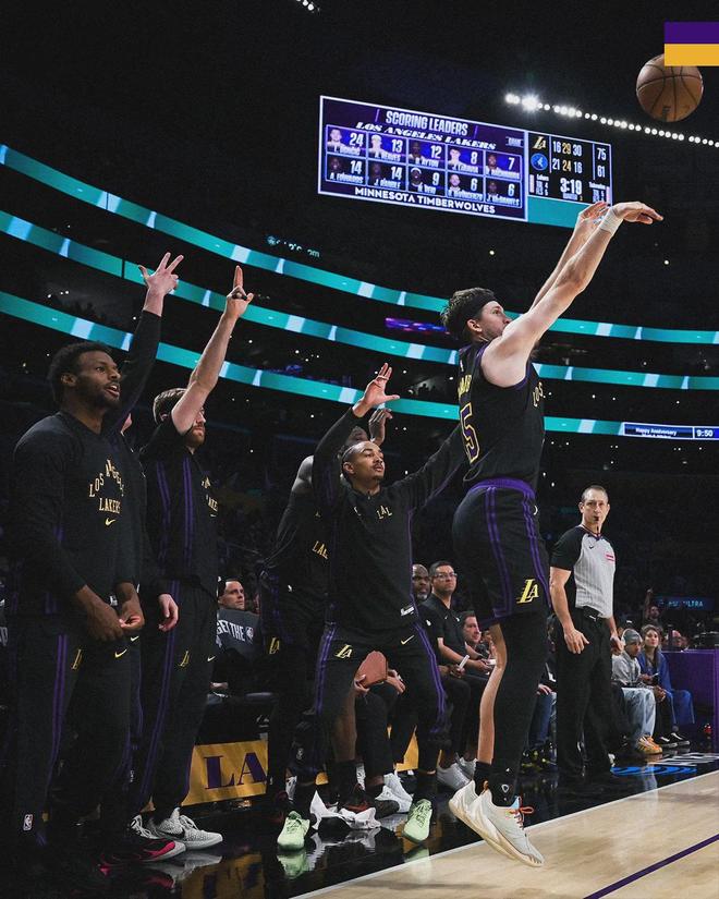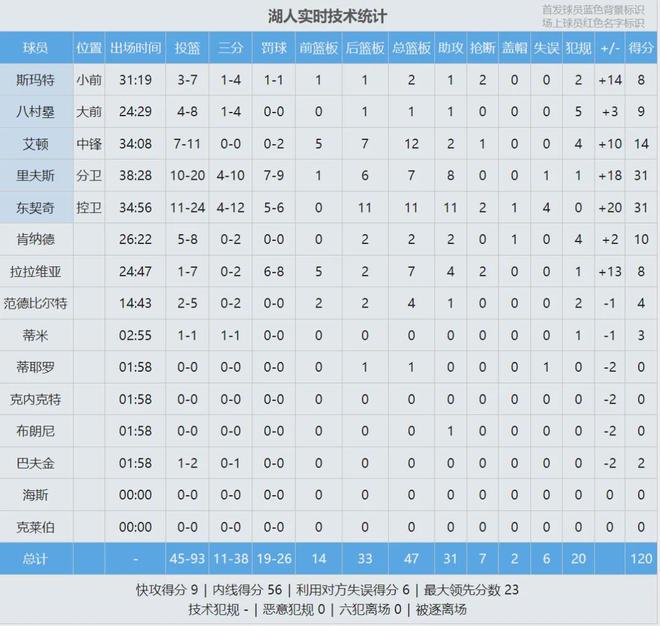 里夫斯20投10中,三分10中4,罰球9中7,砍下31分7板8助1失誤,正負(fù)值+18全場第二!湖人近7場6勝1負(fù),東契奇賽后表示:“靠我們防守端的發(fā)揮,大家每個(gè)回合都在戰(zhàn)斗!”最近6場比賽,湖人有4場把對方限制在107分以內(nèi)。
