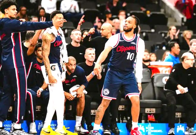 決戰(zhàn)的第四節(jié),米勒自投自搶,展現(xiàn)出頑強(qiáng)的斗志。馬瑟琳和小卡繼續(xù)下三分雨,快船攻勢愈發(fā)猛烈,很快就將分差拉開到20分。森林狼明顯被打懵了,首發(fā)球員回來后,開始肆無忌憚地針對(duì)小卡,試圖通過限制他來扭轉(zhuǎn)局勢。然而,馬瑟琳和巴圖姆手感火熱,三分球遍地開花,分差不僅沒有縮小,反而越來越大。在比賽還剩6分鐘時(shí),森林狼見大勢已去,直接換上第三陣容,繳械投降。最終,快船主場以153 - 128大勝森林狼25分,這場酣暢淋漓的勝利,讓快船球迷歡呼雀躍,也讓森林狼深刻認(rèn)識(shí)到與強(qiáng)隊(duì)之間的差距。