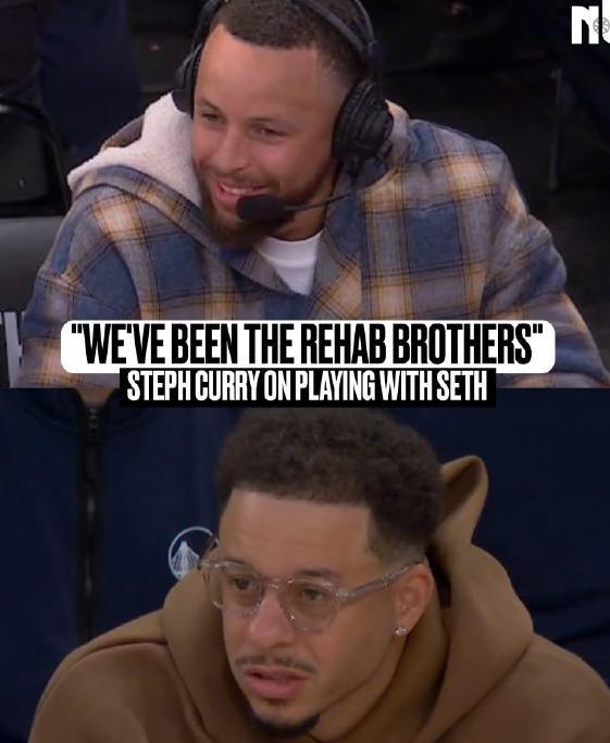 在比賽進行時的場邊采訪中,庫里調侃自己當初和湯普森被人稱為是水花兄弟,現(xiàn)在和弟弟塞斯庫里則經常認為叫做康復兄弟。