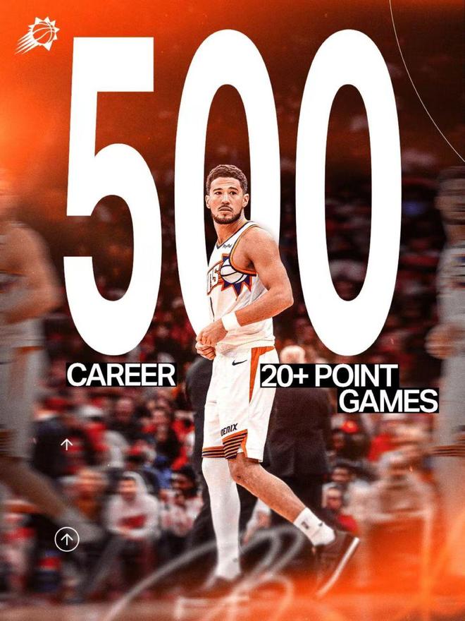 布克達成NBA生涯500場得分20+里程碑。