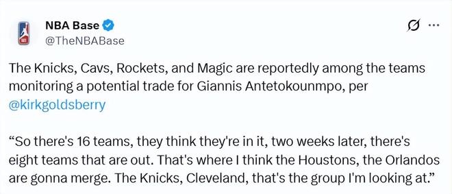 北京時間3月30日,NBA專欄作家戈茲貝里在播客節(jié)目中透露,尼克斯仍是有意通過交易引進(jìn)字母哥的球隊(duì)之一。盡管他們本賽季已是東部聯(lián)盟頂級強(qiáng)隊(duì)之一,但仍未退出關(guān)于字母哥的交易討論。