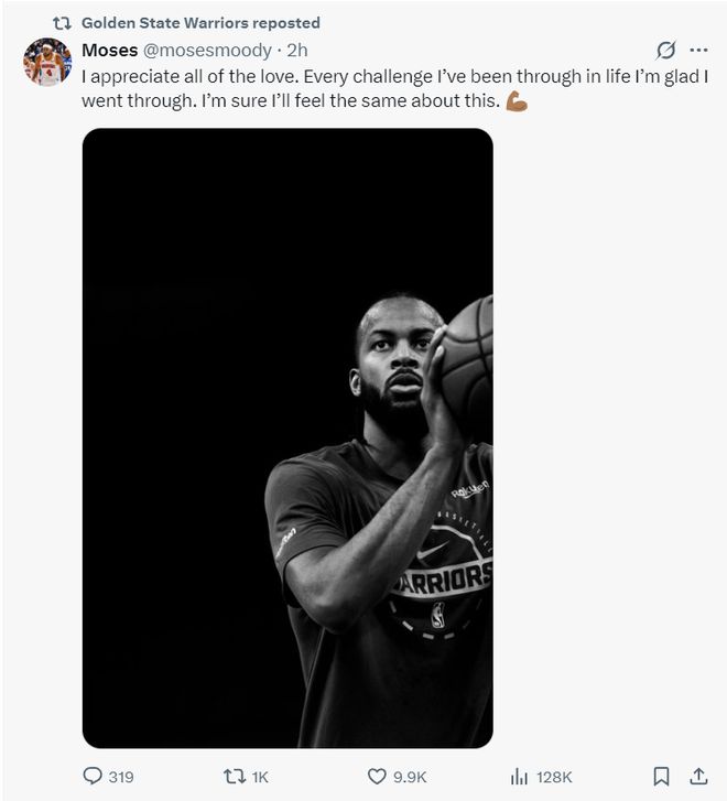 剛剛接受了分左膝髕骨肌腱撕裂修復(fù)手術(shù)的穆迪發(fā)聲:感謝所有的愛。我在人生中所經(jīng)歷的每一場(chǎng)挑戰(zhàn),我都為自己曾經(jīng)歷過而感到慶幸。我經(jīng)歷過的每一場(chǎng)人生挑戰(zhàn),我都為自己曾經(jīng)歷過而感到慶幸。我相信對(duì)于這次經(jīng)歷,我也會(huì)有同樣的感受。