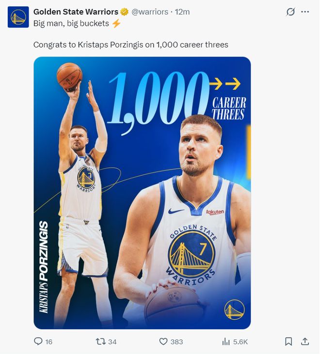 賽前傳來,波爾津吉斯對(duì)勇士的環(huán)境非常認(rèn)可,并已經(jīng)在考慮今夏與球隊(duì)續(xù)約的可能性。