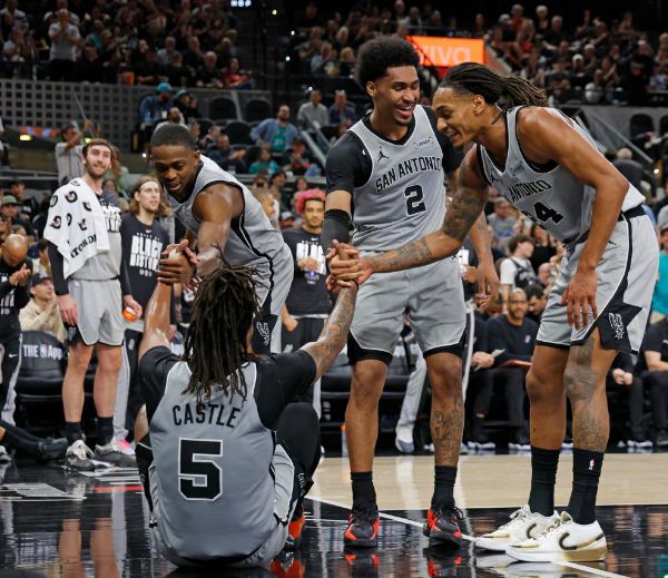 馬刺:文班亞馬41分18板3助3帽、卡斯爾15分7板11助、尚帕尼15分3板2助、巴恩斯13分6板3助、哈珀13分2板5助2斷、??怂?1分4板4助2斷、凱爾登11分3板。