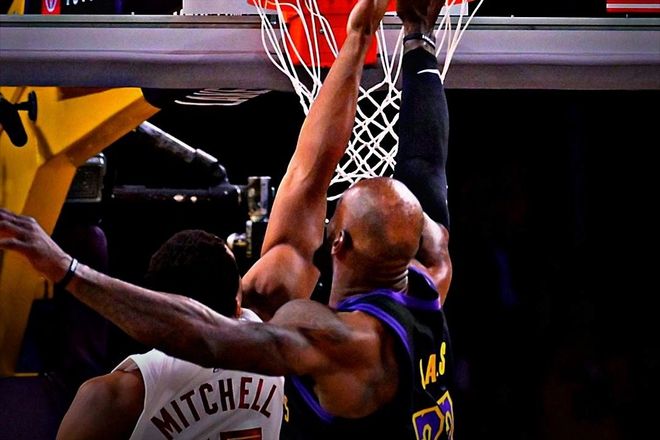 結果確實如此,比賽開始沒多久,湖人就確立了領先優(yōu)勢。三節(jié)還沒打完,湖人隊替補席就充滿了快活的空氣。第三節(jié)結束前,隨著拉拉維亞底角三分命中,湖人隊的領先優(yōu)勢來到了27分。所以整個末節(jié)比賽,騎士隊就換上了替補陣容,放棄了掙扎。這場比賽剛開始的時候,中場跳球后米切爾搶到球權,直殺籃下撞開東契奇,準備幫助球隊取得首分。沒想到成全了詹姆斯,開場不到5秒的時間,被詹姆斯來了一個追身封蓋。似乎是這一球,讓米切爾直接萎了一整場。而也是這一球,讓詹姆斯像打了雞血一樣,背靠背完全看不出一絲疲態(tài)。