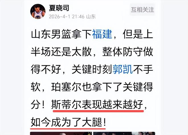 最初斯蒂爾在NBL江西隊打球,上賽季效力CBA福建隊,但是賽季結(jié)束后沒有與斯蒂爾續(xù)約。不得佩服山東隊和邱彪,他們竟然看上了斯蒂爾,曾經(jīng)的被拋棄之人,居然成了山東隊的大腿。山東隊也遇到了幸福的煩惱,目前山東隊內(nèi)有5名外援,等到克里斯回歸后不知道裁掉的外援是誰?看來斯蒂爾會大概率擠掉大外援瓊斯。你們說呢?