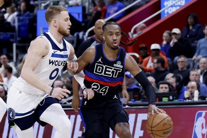 北京時間4月3日,NBA常規(guī)賽迎來活塞與森林狼的比賽!活塞上一場在主場11分擊敗猛龍,森林狼在客場大勝獨行俠;本賽季活塞與森林狼首次交鋒時,活塞曾客場109-87輕取森林狼。本場較量雙方均有主力缺陣:森林狼的愛德華茲與麥克丹尼爾斯缺席,活塞的坎寧安與斯圖爾特缺陣。首節(jié)雙方即刻開啟對攻模式,森林狼開局4-10落后,隨后迅速反撲追至10-12?;钊麅?nèi)外線同步發(fā)力,逐步拉開6分領(lǐng)先優(yōu)勢,森林狼緊接著連追4分,此后兩隊陷入膠著拉鋸,比分交替緊咬,首節(jié)戰(zhàn)罷,森林狼以31-30微弱領(lǐng)先活塞。