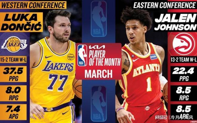 今日,NBA官方發(fā)布了3月份東西部月最佳球員名單,結(jié)果顯示東部由老鷹新王約翰遜獲得,西部則由湖人領(lǐng)袖東契奇當(dāng)選。在過去的3月份里,約翰遜出戰(zhàn)13場,場均得到22.5分8.5籃板8.5助攻,幫助老鷹取得了11勝2負(fù)的戰(zhàn)績;東契奇出戰(zhàn)16場,場均砍下37.5分8籃板7.4助攻,率領(lǐng)湖人取得了14勝2負(fù)的戰(zhàn)績。無論從個(gè)人數(shù)據(jù),還是球隊(duì)?wèi)?zhàn)績來看,兩人的當(dāng)選都是實(shí)至名歸的。
