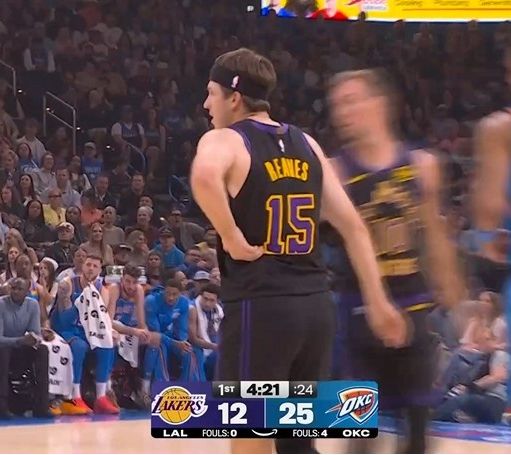 一節(jié)崩?湖人首節(jié)21-44落后雷霆23分 東契奇6中1里夫斯腰部不適