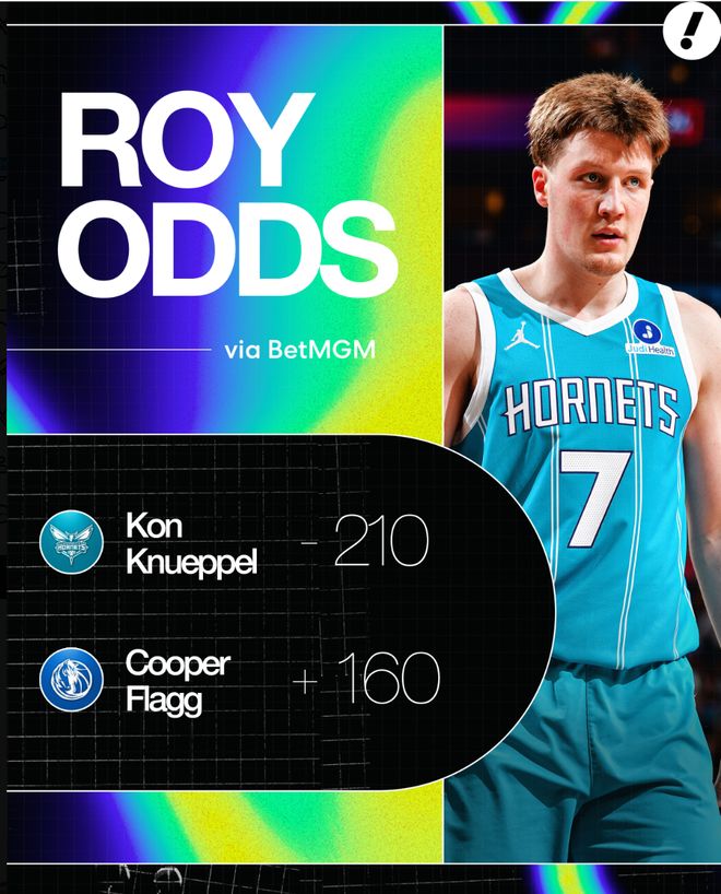 最新一期的官方最佳新秀榜克努佩爾還是蟬聯(lián)第一,他的ROY賠率-210也斷崖領(lǐng)跑,弗拉格排第二+160,這個(gè)差距是非常之大的。