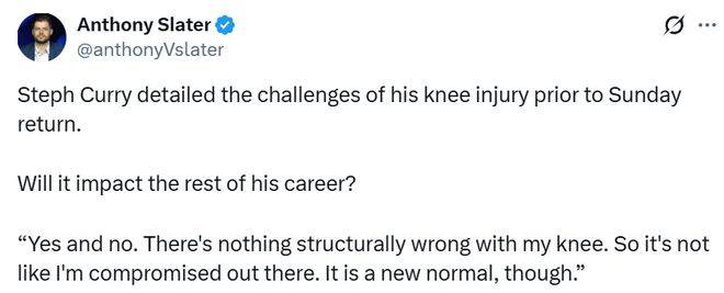 庫里表示,這次傷病和他過往的腳踝、膝蓋、尾骨傷勢都不同——沒有明確的恢復時間表,也無法強行帶傷作戰(zhàn),即便恢復到后期也不能貿(mào)然上場。