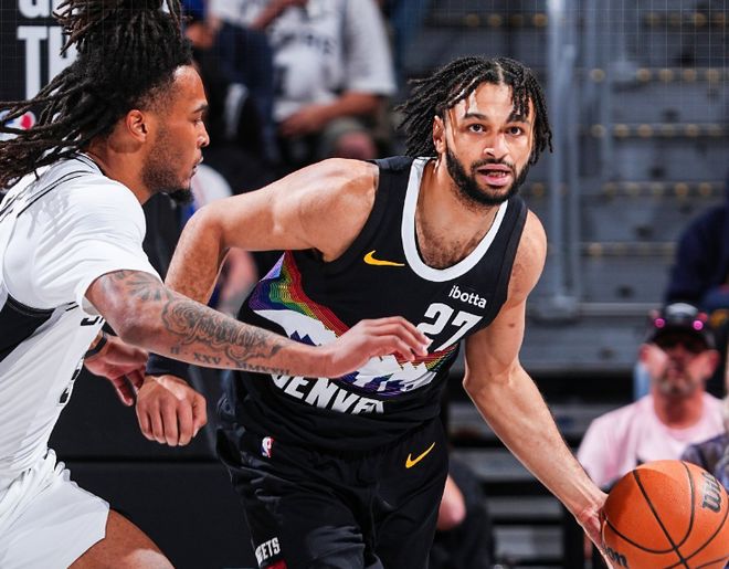 掘金:約基奇40分8籃板13助攻3蓋帽,卡約17分8籃板,戈登15分6籃板,布勞恩5記三分21分8籃板,穆雷15分10助攻,小哈達威10分。