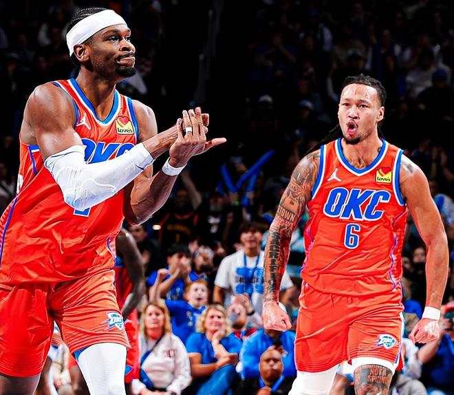 衛(wèi)冕冠軍輕輕松松制造一場21分慘案,三巨頭齊發(fā)威!其中,杰倫威貢獻20分+5助攻,切特攻下22分+7籃板,SGA也保持著MVP級別的輸出。SGA三節(jié)打卡下班,僅出戰(zhàn)28分鐘,24投13中(三分球6中2),罰球6中4,狂轟32分+7籃板+6助攻+2搶斷+2蓋帽的豪華數(shù)據(jù)。據(jù)NBA官網數(shù)據(jù)統(tǒng)計,這是SGA連續(xù)98場比賽砍下20+,排在NBA歷史第2位,僅次于張伯倫(126場)。同時,這是SGA本賽季第9次在出場時間不足30分鐘的情況下砍下30+,排在NBA歷史第1位。