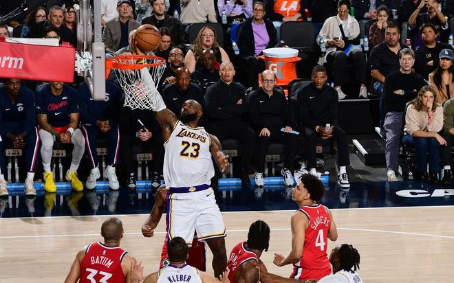 在圣誕大戰(zhàn)之前,在自己41歲生日之前,詹姆斯恢復(fù)了狀態(tài)。這場比賽,湖人開局就很不妙,被快船打了一個9比0。湖人在首節(jié)進行到8分08秒才由詹姆斯投進三分球打破得分荒。詹姆斯隨后連續(xù)兩次扣籃得分。首節(jié)比賽,詹姆斯得到7分,湖人15比28落后13分。第二節(jié)比賽,詹姆斯又得到7分,其中包括一記扣籃??鞚M41歲的詹姆斯在場上很活躍。湖人上半場39比54落后了15分。