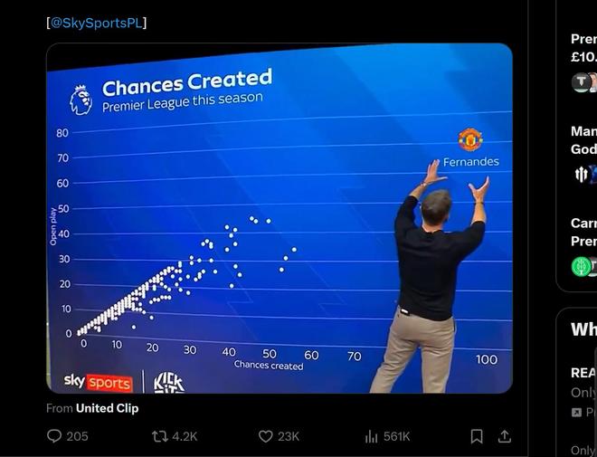 賽后主持人曬出布魯諾-費(fèi)爾南德斯本賽季英超創(chuàng)造機(jī)會的數(shù)據(jù),一旁的亨利和卡拉格都笑出了聲。