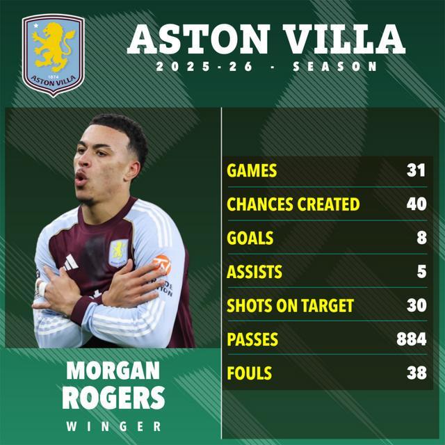 那么問題來了,要帶走他得砸多少錢?據(jù)估計(jì),羅杰斯的轉(zhuǎn)會(huì)費(fèi)很可能會(huì)超過8000萬英鎊,甚至有希望打破當(dāng)年格拉利什1億英鎊轉(zhuǎn)會(huì)曼城的俱樂部歷史紀(jì)錄!看看他本賽季的數(shù)據(jù)你就明白為什么這么貴了:英超8球5助攻,歐聯(lián)杯還有3次參與進(jìn)球。這表現(xiàn)不僅讓他成了圖赫爾麾下英格蘭隊(duì)的???,更有望在世界杯上出任首發(fā)10號(hào)位?;叵?024年維拉從米德爾斯堡簽下他時(shí),僅僅花了800萬英鎊。至今他在114場比賽里狂轟27球,這波投資維拉絕對是贏麻了。