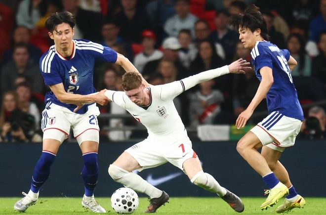 英格蘭與日本一戰(zhàn),圖赫爾的戰(zhàn)術(shù)被克制了。日本依靠犀利的反擊,在第23分鐘取得進(jìn)球。帕爾默丟球讓日本踢出快速反擊。三笘薫在禁區(qū)中路包抄推射破門(mén)。這是全場(chǎng)唯一的進(jìn)球。英格蘭0-1落敗。雖然英格蘭控球率高達(dá)7成,全場(chǎng)19次射門(mén),但就是無(wú)法進(jìn)球。英格蘭此戰(zhàn)缺少了凱恩和貝林厄姆等頂級(jí)球星,但這些上場(chǎng)的球員總身價(jià)也遠(yuǎn)高于日本球員,而且又是主場(chǎng)作戰(zhàn),輸?shù)舯荣惙浅u辱。